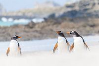 Koop dit vogel kunstwerk Drie Ezelspinguïns in Gesprek op Carcass Island van Nanda Bussers op canvas, aluminium dibond, (ingelijste) fotoprint, behang en ArtFrame, op maat geprint in Fine-Art kwaliteit.
