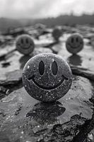 Een grijze dag krijgt een vrolijke noot met deze unieke print. Drie stenen met een glimlach, een symbool van positiviteit en veerkracht, dagen de sombere achtergrond uit. Een subtiel eerbetoon aan street art, perfect voor een vleugje urban coolness in huis. Laat je niet misleiden door de eenvoud, dit kunstwerk brengt een glimlach op ieders gezicht.