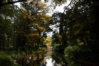 Drie kleuters op een bruggetje in het bos