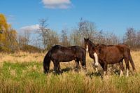 Voorjaar op de weide deze drie paarden genieten van de voorjaar zon.