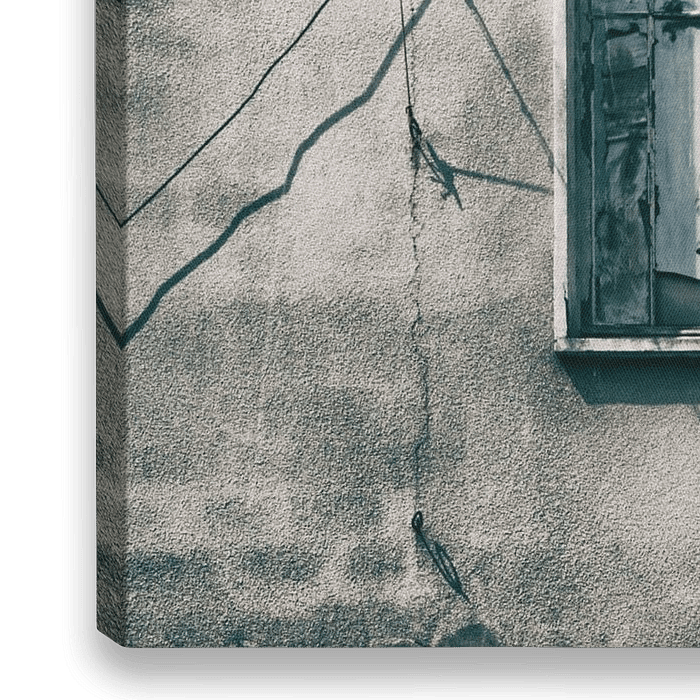 Het spreekt tot de verbeelding een venster dat duidelijk aan ondehoud toe is, Ondertussen weten we allemaal dat het niet gaar gebeuren. Een stoer werk dat in de huidige trent van beton en stoere accenten past. kortom bij jou aan de muur of misscien wel heel groot als fotobehang op de muur!