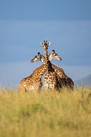De hoofden van de giraf lijken wel los te staan van hun lichaam: een drie eenheid. Deze foto is gemaakt in de Maasai Mara in Kenia
