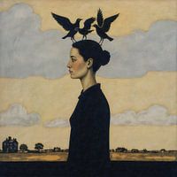Ik denk dat dit schilderij, "Three Spirits of Calm", gaat over het vinden van een balans tussen innerlijke rust en de complexiteit van het leven.De vrouw in het profiel is super beheerst, alsof ze heel vastberaden is. Ze kijkt in de verte, wat voor mij symbool staat voor veerkracht - die innerlijke kracht die we allemaal hebben, zelfs…