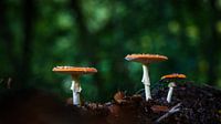 Drie kleine vliegenzwammen in het grote bos van Fotografiecor .nl