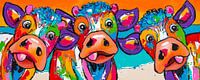Drie komische Koeien bij Zonsondergang van Happy Paintings / Renata Rolefes