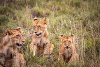 Drie leeuwbavianen of leeuwenwelpjes in Kenia Afrika. Safari in de ochtend van Fotos by Jan Wehnert