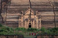 Drie monniken beklimmen de trappen van de Mingun Pagoda ten noorden van Mandelay. Deze pagode is volledig massief uit bakstenen opgetrokken. Wout Kok One2expose