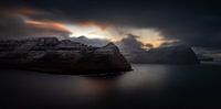 Bordoy, Kunoy en Kalsoy eilanden in bewolkte schemering, Faeröer-eilanden