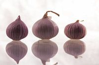 Verse knoflook, een ingrediënt dat niet mag ontbreken in de keuken. Hij is erg gezond en smakelijk in bijna elk gerecht. Drie teentjes knoflook als keukenstilleven