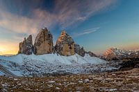 Zonsopgang op de drie toppen in de Dolomieten