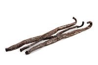 Over ‘Drie vanillepeulen, close-up geïsoleerd met schaduwen op een witte achtergrond’ van Maren Winter