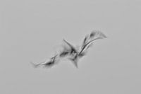 De foto is gemaakt met een voor vogelfotografie lange sluitertijd in combinatie met het bewegen van de camera tijdens het maken van de foto (Intentional Camera Movement) waardoor soms bijzondere, abstracte vormen ontstaan. Deze drie ganzen vormden samen één vogel.