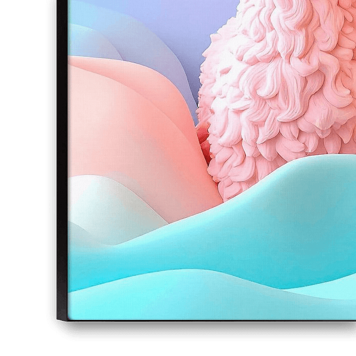 Drie alpaca's, met vrolijke schattige snuitjes, staan tussen pastelkleurige golven, alles gemaakt van zeep dus zacht en heerlijk geurend. Het beeld is met behulp van ai gegenereerd.