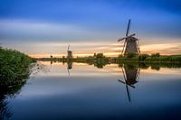 Drie windmolens bij Kinderkijk tijdens de schemering.