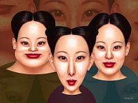 Een drieling met elk een ander gezicht, maar ze lijken wel op elkaar. Uiteraard is dit humoristisch bedoeld.