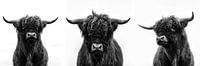 Zwart-wit portret van een Schotse Hooglander.