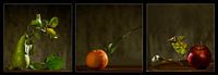 Drieluik met fruit. Drie stillevens van fruit naast elkaar. Mooi voor in de keuken bijvoorbeeld. Stijl picturalisme.
