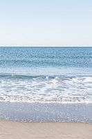 Drieluik van het Scheveningse strand met de Noordzee gefotografeerd tijdens een mooie dag. De zee is kalm en door de kleuren straalt de zee rust uit.