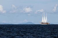 Een driemaster, ook wel Tall Ship, genoemd zeilend tussen de Kleine Antillen eilanden. Een mooie reis om bij weg te dromen.