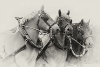 Nostalgische bewerking van een foto van een driespan trekpaarden.