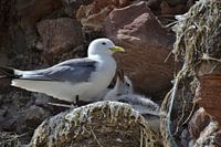Drieteenmeeuwen broeden in Dunbar (Oost-Schotland) op de stenen van Dunbar Castle.