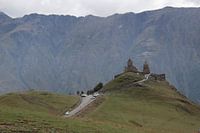 De Drievuldigheidskerk van Gergeti is gelegen op de helling van de Kazbegi op een hoogte van 2170 meter. De wandeling van ruim 2 uur naar de kerk vanuit Stepantsminda is behoorlijk uitdagend, maar de prachtige uitzichten op de majestueuze bergen van de Kaukasus zijn het waard.