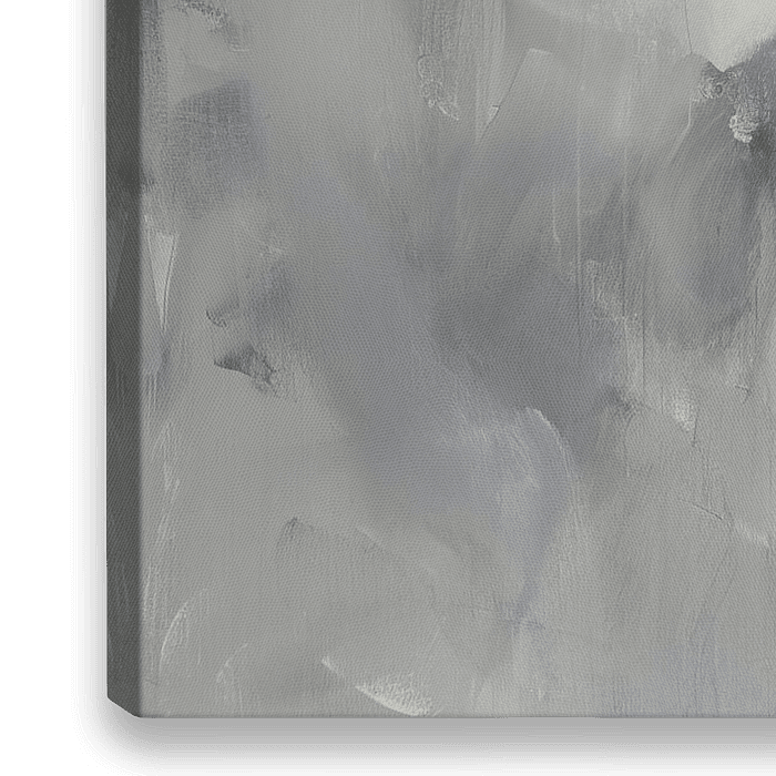 Drift into Silent Intimacy - Dit romantische schilderij toont een man en een vrouw in een innige omhelzing. De stijl is semi-abstract met vloeiende, losse penseelstreken die de vormen van de figuren en hun interactie vervagen, waardoor een droomachtige en intieme sfeer ontstaat. De hoofdkleuren zijn grijstinten met accenten van wit en…