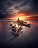Drijfhout in de zonsondergang