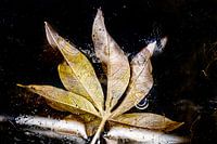 Macro-opname van een drijvend blad tegen een zwarte achtergrond