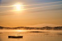 Zwemeiland in een Zweeds meer in Smaland. Zwemplezier op het Scandinavische platteland.