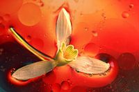 Bloem van een sneeuwklokje op water en olijfolie. Gefotografeerd met een macro lens. De olie geeft een mooi kleuren effect. Kijk ook eens bij mijn andere foto's met dit onderwerp