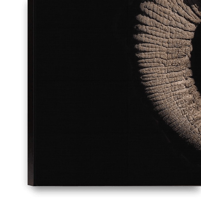 Een prachtige olifantenstier die zijn slurf naar zijn mond brengt om er water uit te spuiten. Voor deze foto, genomen op safari in Zuid Afrika, heb ik de achtergrond zwart gemaakt zodat de structuur van de huis van de olifant nog beter naar voren komt.