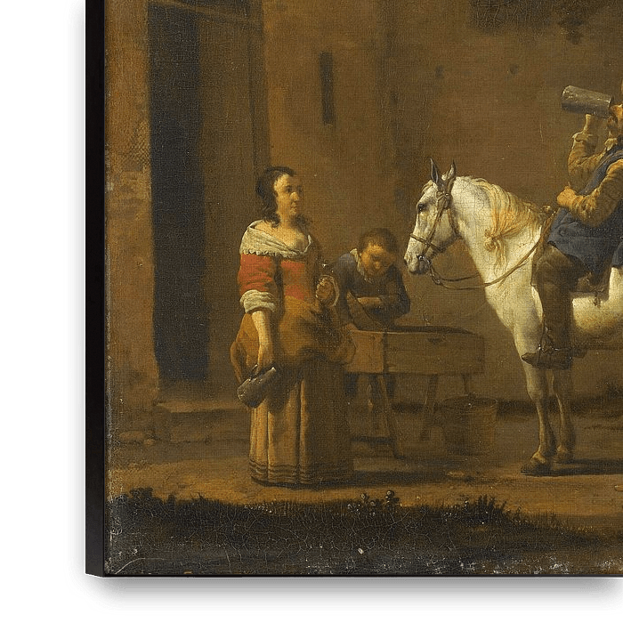 Koop Drinkende trompetter te paard, Karel du Jardin als reproductie geprint op canvas, aluminium dibond, (ingelijste) fotoprint, behang en ArtFrame. Voor jou op maat geprint in Fine-Art kwaliteit.