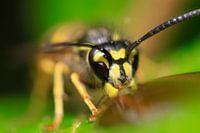 Met beetje geduld en van heel dichtbij heb ik deze foto kunnen maken. Met weinig bewegingen en ingehouden adem kon ik deze prachtige drinkende wesp benaderen.