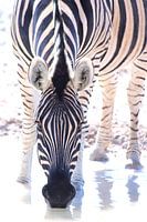 Zebra staat in een klein poeltje met water te drinken in de wildernis van Afrika. Zwart wit