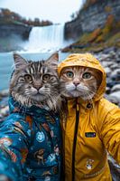 Het fotografische werk "Drizzle Purr" toont twee katachtige avonturiers, gehuld in weerbestendige jassen, die de barre elementen trotseren in de buurt van een imposante waterval. Hun fascinerende blikken en de nauwgezette details van hun kleding leggen de essentie vast van een vochtige maar betoverende dag van verkenning. Het beeld combineert de wilde schoonheid van de natuur met de onwrikbare geest van deze harige ontdekkingsreizigers en is een eerbetoon aan de geest van avontuur die zowel in de menselijke als in de dierlijke ziel huist.