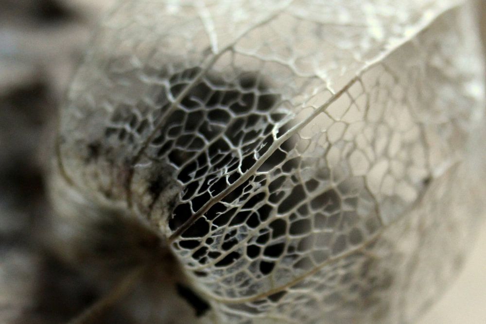 Deze Golden Berry uit eigen tuin was volledig uitgedroogd, maar gaf nog een mooi resultaat bij deze zachte macrofoto.