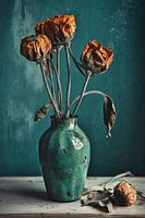 Koop dit bloemen kunstwerk Droge bloemen in turkooizen vaas van Treechild op canvas, aluminium dibond, (ingelijste) fotoprint, behang en ArtFrame, op maat geprint in Fine-Art kwaliteit.