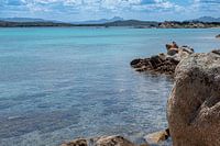 Een azuurblauwe zee, helder als glas, wat een prachtige baai op La Madalena.