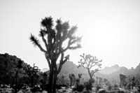 Een woestijnlandschap en Joshua Trees in de vroege ochtend. Joshua Tree National Park, Californië, Verenigde Staten.