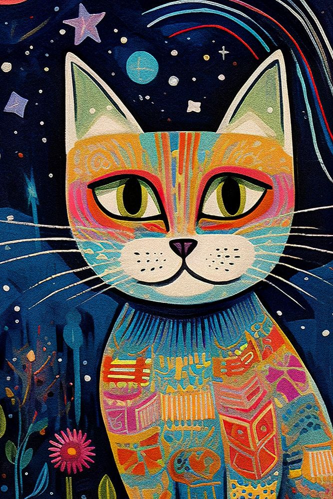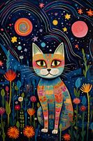 Deze kat is een dagdromer. Hij droomt van verre sterren planeten. Hij zit graag tussen de bloemen denkend aan verre oorden.