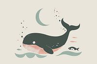 Dit betoverende kunstwerk toont een schattige, slapende walvis onder een zacht oplichtende maan. De zachte pastelkleuren en het speelse ontwerp creëren een rustgevende sfeer, perfect voor een kinderkamer. Kleine visjes zwemmen rond de walvis terwijl de maan zachtjes over het tafereel waakt. Ideaal om een ontspannen en rustige omgeving voor je kleintjes te creëren, die uitnodigt tot zoete dromen.