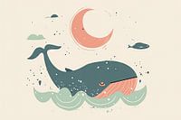 Dit betoverende kunstwerk toont een schattige, slapende walvis onder een zacht oplichtende maan. De zachte pastelkleuren en het speelse ontwerp creëren een rustgevende sfeer, perfect voor een kinderkamer. Kleine visjes zwemmen rond de walvis terwijl de maan zachtjes over het tafereel waakt. Ideaal om een ontspannen en rustige omgeving voor je kleintjes te creëren, die uitnodigt tot zoete dromen.