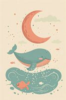 Dit betoverende kunstwerk toont een schattige, slapende walvis onder een zacht oplichtende maan. De zachte pastelkleuren en het speelse ontwerp creëren een rustgevende sfeer, perfect voor een kinderkamer. Kleine visjes zwemmen rond de walvis terwijl de maan zachtjes over het tafereel waakt. Ideaal om een ontspannen en rustige omgeving voor je kleintjes te creëren, die uitnodigt tot zoete dromen.
