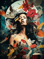 Als je een stap terug doet om de collage als geheel in je op te nemen, merk je dat het zich onttrekt aan een eenvoudige beschrijving. Het'is meer dan een serie beelden; het is een ervaring, een droomlandschap geweven uit het weefsel van meerdere werkelijkheden, die de kijker uitdaagt om de complexe verhaallijnen te ontwarren.