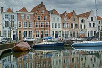 Dromerig beeld van de haven van Goes met sfeervolle oude huizen en bootjes
