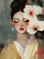 Dromerig portret met bloemen. Een bijzondere blikvanger voor je interieur! Kies zelf het formaat en materiaal bij dit werk en maak het helemaal naar wens.
