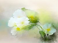 Koop dit bloemen kunstwerk Dromerig schilderij van een Witte Sleutelbloem van Studio Pieternel op canvas, aluminium dibond, (ingelijste) fotoprint, behang en ArtFrame, op maat geprint in Fine-Art kwaliteit.