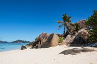 Dromerige ansichtkaart-idylle op het strand van Anse Source d'Argent op het eiland La Digue, Seychellen