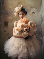 Het zachte volume van de tule rok, de zorgvuldig gerangschikte bloemen en de gedempte tinten roepen een gevoel op van zowel kracht als kwetsbaarheid. Elk beeld is als een stil gefluister, waarin het natuurlijke en het ambachtelijke naadloos in elkaar overgaan.